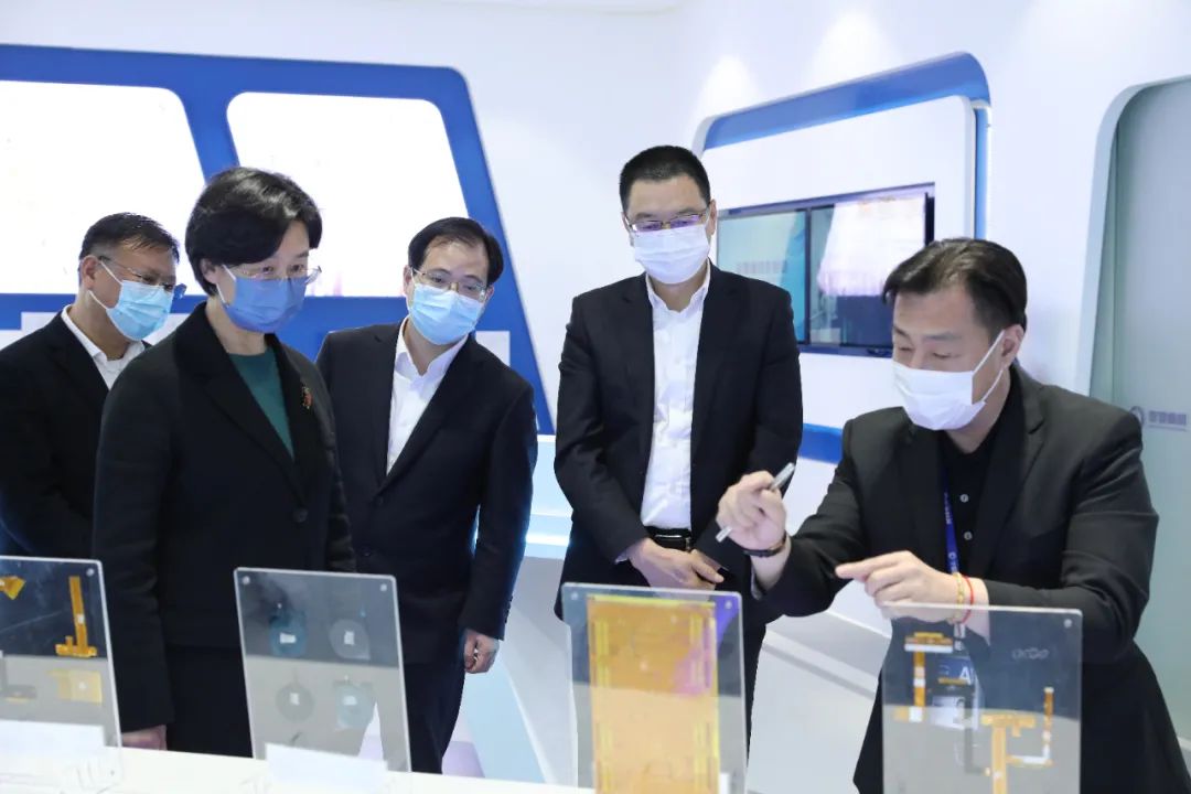 練月琴一行來到江陰駿馳新材料科技有限公司(簡稱“駿馳新材”),實地查看了企業(yè)生產(chǎn)車間和5G產(chǎn)品展廳。