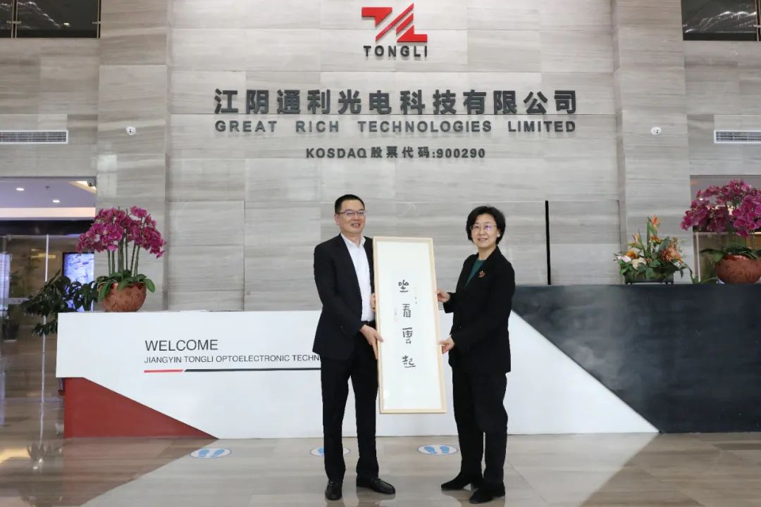 3月9日,省臺辦主任練月琴一行來江陰通利光電科技有限公司(以下簡稱“通利科技”)走訪調(diào)研,助力引導(dǎo)臺資企業(yè)持續(xù)穩(wěn)健發(fā)展。