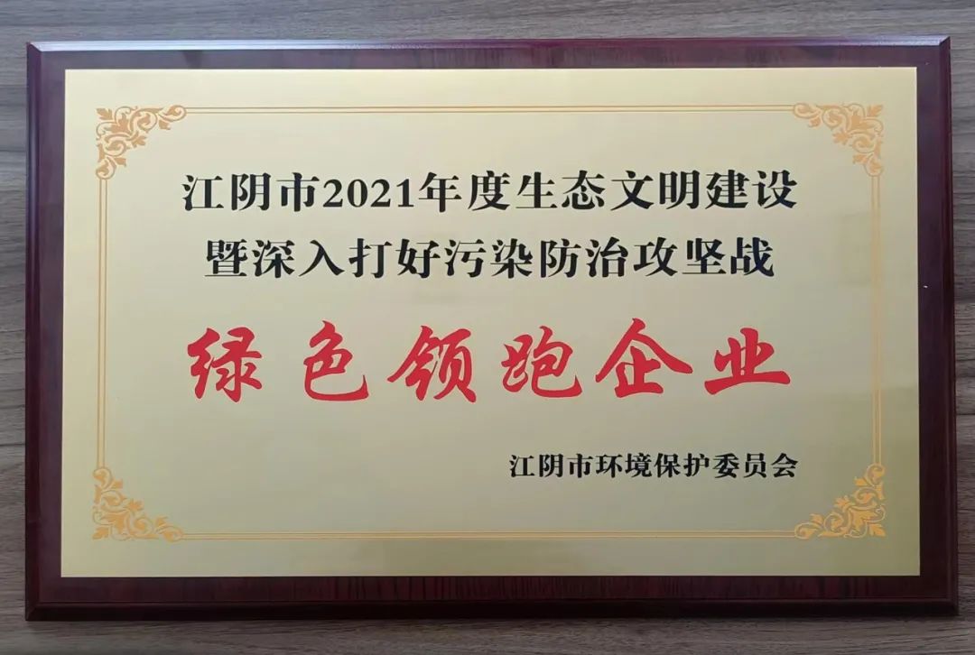 通利科技榮獲了江陰市環(huán)境保護(hù)委員會頒發(fā)的江陰市2021年度生態(tài)文明建設(shè)暨深入打好污染防治攻堅(jiān)戰(zhàn)“綠色領(lǐng)跑企業(yè)”榮譽(yù)稱號。