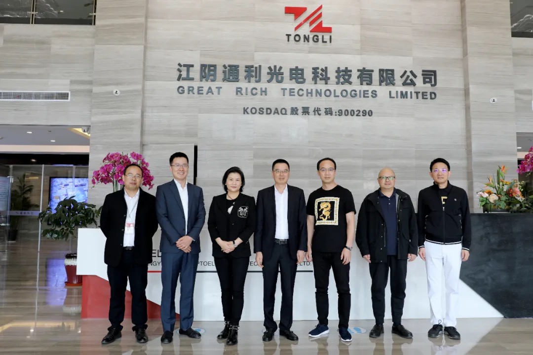 2020年11月3日,藍(lán)思科技股份有限公司(以下簡稱“藍(lán)思科技”)周群飛董事長、鄭俊龍總裁一行來江陰通利光電科技有限公司(以下簡稱“通利科技”)交流考察。通利科技董事長周永南、副總經(jīng)理向江哲熱情接待,雙方共話友誼,暢敘協(xié)同發(fā)展大計。